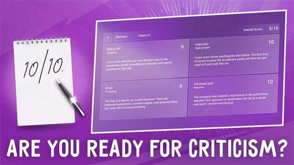离开工厂的汽车在性能和稀有程度上各不相同,这取决于其制造中使用的部件,每个细节都会影响最终品质。客户一般选择质量更好的汽车,所以你必须不断调整你的工厂的生产技术,引入最先进的制造工艺。要成为汽车行业的领导者需要大量的时间,所以要抓住更多的人才,用它来驱动企业发展。游戏还加入了测试赛道,让你可以亲自试驾新车,感受不同配置带来的驾驶差异。
