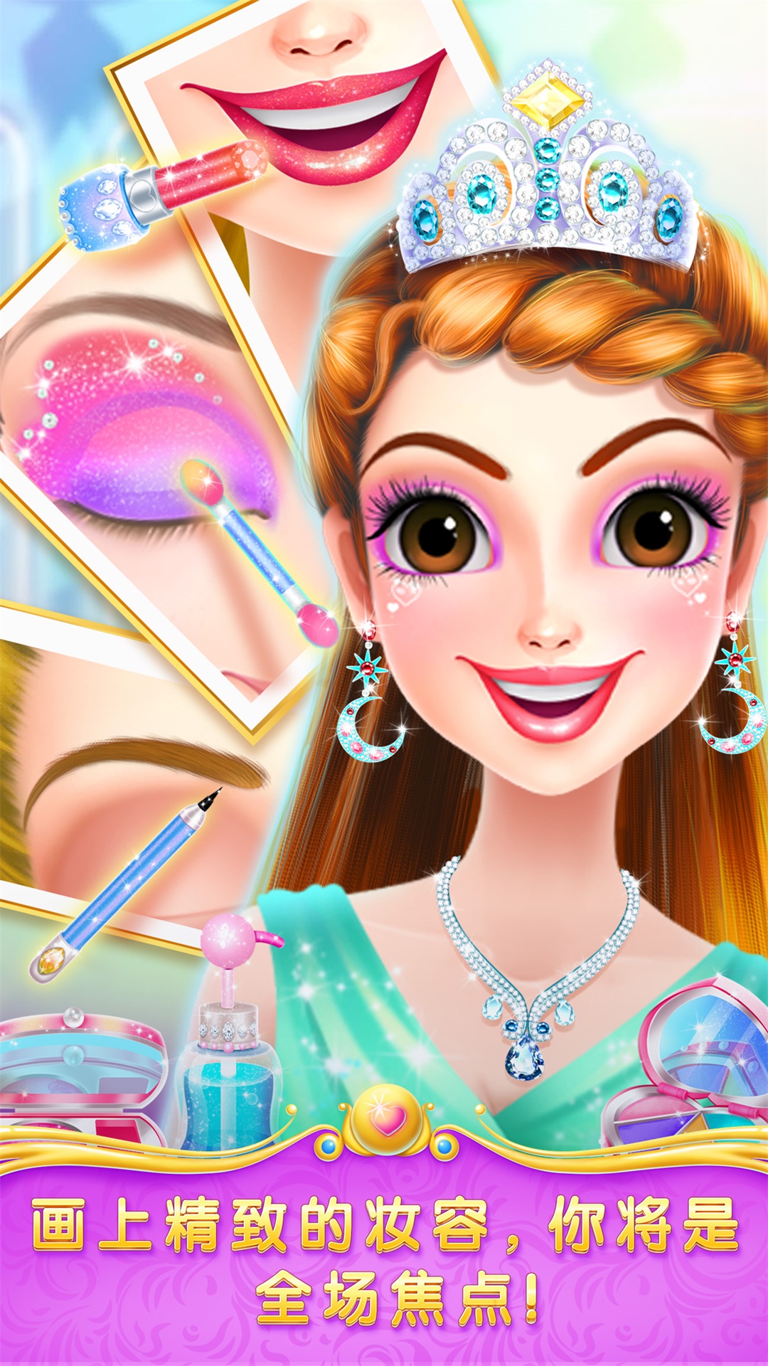 --这里有全套的化妆品,快画个美美哒的妆,你将是全场焦点!眼影、腮红、唇彩等上百种彩妆单品任你搭配。