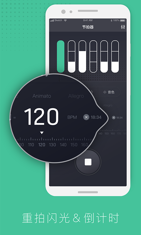 支持重拍闪光和倒计时功能,这些视觉辅助工具大大提升了练习的便利性。重拍闪光让用户能够直观地识别强拍位置,而倒计时功能则为练习开始提供了准备时间,使训练过程更加专业和高效。