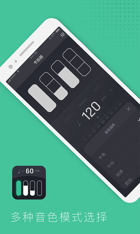 木板、木鱼、金属等多种音色模式为用户提供了丰富的听觉体验,每种音色都经过精心调校,确保清晰度和辨识度。这些不同的音色选择不仅能让训练过程更加有趣,还能帮助培养对不同音色的敏感度。