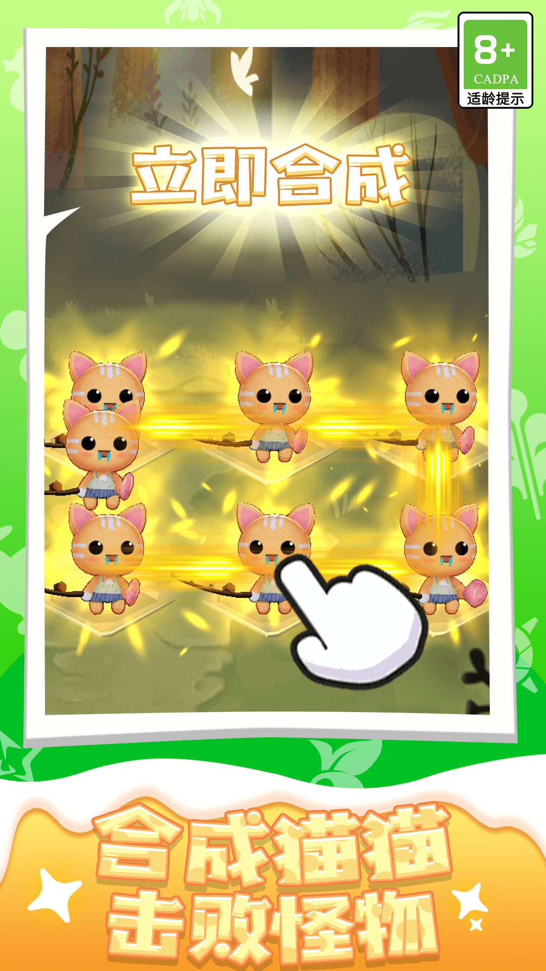 合成系统采用物理引擎模拟,两只猫咪碰撞时会产生绚丽的元素反应特效,合成高星级猫咪时更会触发全屏动画;