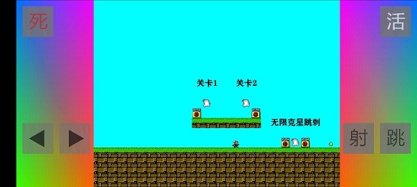 这款游戏以其高难度的跳跃闯关玩法而闻名,采用复古像素风格的画面设计,简单却充满趣味。玩家需要精准控制小人的移动和跳跃,同时还能发射子弹攻击敌人。游戏中的陷阱和障碍物设计巧妙,稍有不慎就会失败,需要玩家全神贯注。每一次成功闯关都会带来巨大的成就感,而失败则会让你想要立即重来。这种紧张刺激的游戏体验正是其魅力所在,快来接受挑战吧。