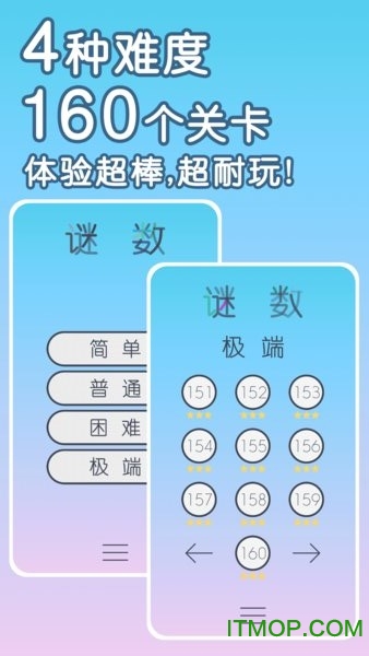 谜数内购破解版是一款极具挑战性的解谜类手游,游戏精心设计了4种不同难度模式,无论是新手还是高手都能找到适合自己的挑战。每通过一关,玩家不仅能体验到解谜的乐趣,还能收获一则有趣的冷知识,在娱乐中增长见识。游戏内置14种独特道具玩法,充分激发玩家的大脑潜能。简约清新的画面风格搭配舒缓的背景音乐,为玩家营造出轻松愉悦的游戏氛围,让每一次解谜都成为享受。