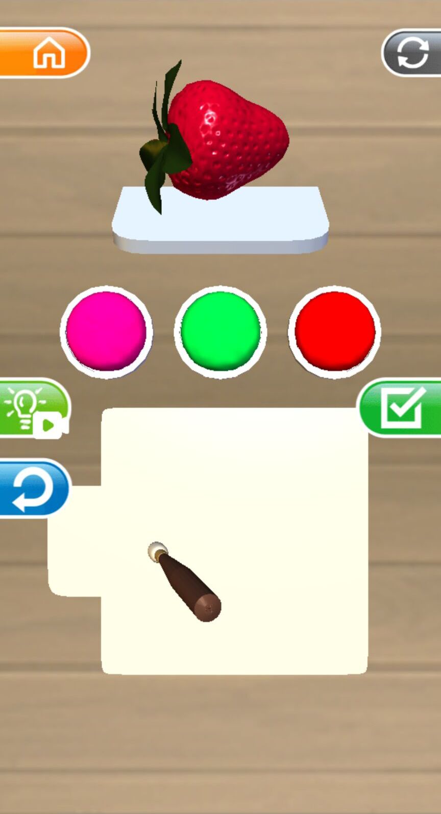 点击或拖拽水果,将它们移动到正确位置,就可以完成一轮水果调色了。