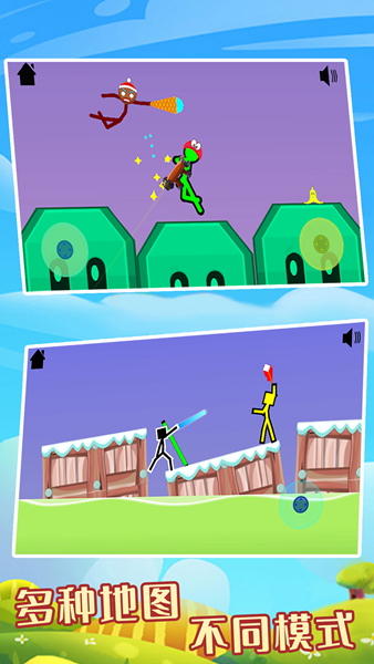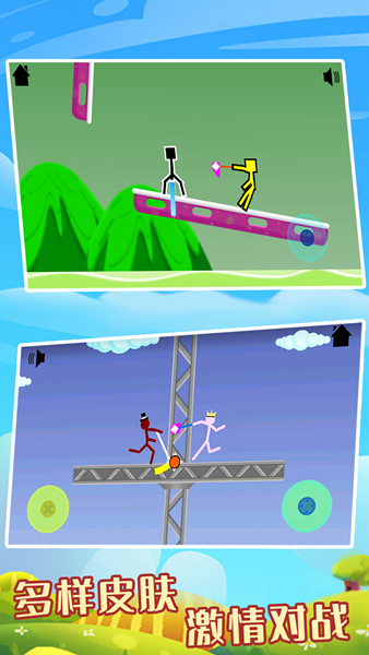 整体以火柴人为主角,拟人化设计让玩家更容易进入游戏世界。每个火柴人角色都拥有独特的性格特征和战斗风格,从外形到动作都经过精心设计。