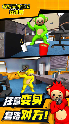 模拟天线宝宝躲猫猫游戏设有多个场景,玩家可以在不同的场景中尝试躲猫猫挑战,增加了游戏的可玩性。