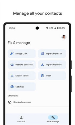 用户可以根据不同帐户(如工作帐户和个人帐户)分类查看联系人,便于管理。软件还会智能推荐添加新联系人或合并重复联系人的相关建议,帮助优化通讯录。此外,用户可以直接修改联系人的电话号码、邮箱地址、照片等信息,确保数据的准确性和完整性。