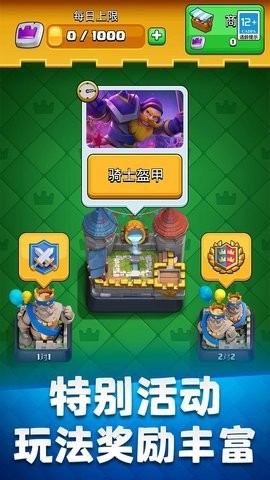 通过摧毁敌方皇家塔收集皇冠,解锁内含惊喜的皇冠宝箱;