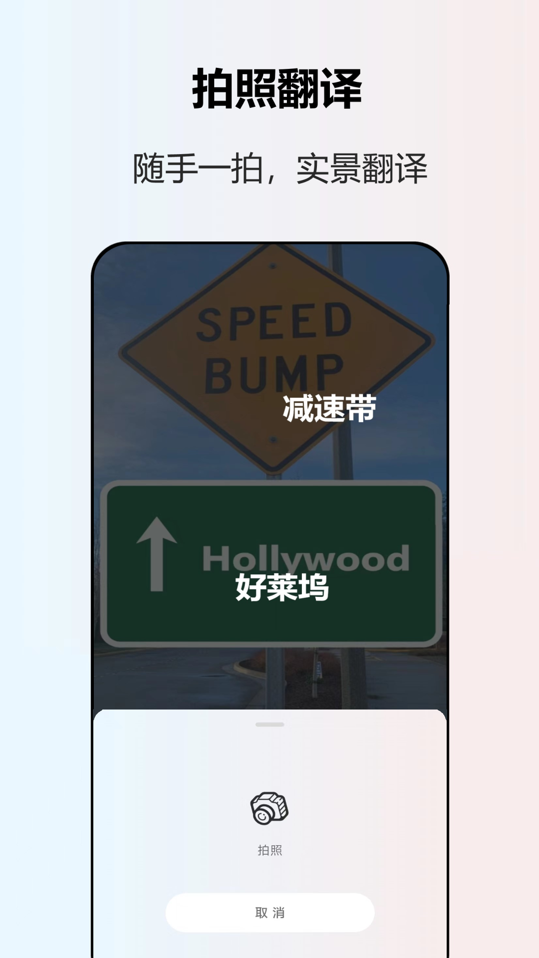 拍照翻译功能让文档翻译更高效:点击相机图标拍摄需要翻译的文本,App会通过先进的OCR技术自动识别图片中的文字,并快速完成翻译。该功能还支持实时取词,只需将摄像头对准文字就能即时显示翻译结果。