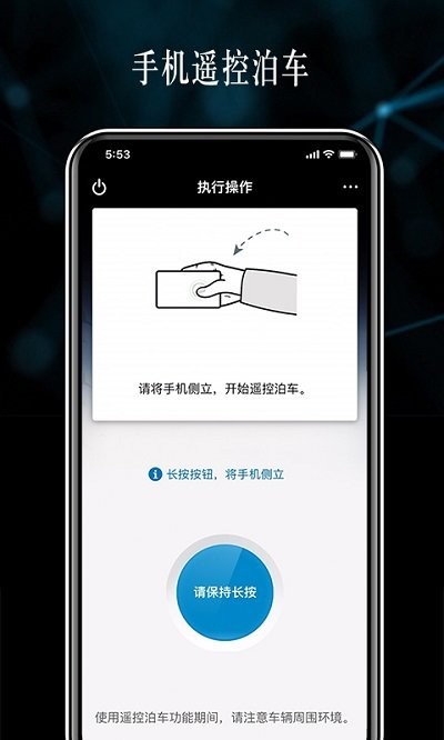 当您需要泊车时,选择一个空闲停车位,下车并站在车旁,长按手机按钮并将手机侧立,即可遥控移动车辆至停车位,整个过程流畅自然如同玩游戏般简单。