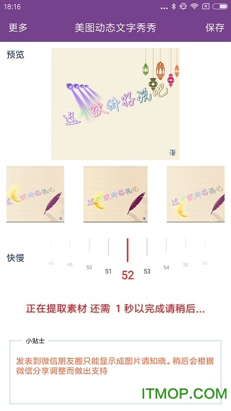 动态文字秀秀是一款专为创意文字爱好者打造的GIF制作神器。它能将普通的文字转化为充满活力的动态图像,让你的表达方式不再单调。无论是社交媒体分享、个人创作还是趣味聊天,这款应用都能让你的文字"动"起来。通过丰富的动画效果和个性化设置,用户可以轻松制作出独具特色的动态文字作品。操作界面简洁直观,即使没有设计基础也能快速上手,是提升内容吸引力的绝佳工具。