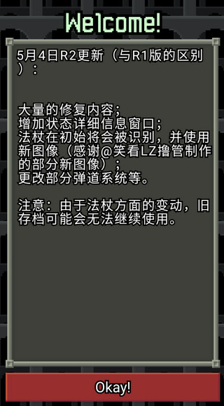 本次更新修复了大量已知问题,显著提升了游戏稳定性;新增的状态详细信息窗口让玩家可以更直观地掌握角色当前状况;法杖系统进行全面革新,初始即可识别并使用全新视觉效果;弹道系统经过物理引擎优化,投射物轨迹更加真实自然。需要注意的是,由于法杖系统的重大改动,旧版本存档可能会出现兼容性问题,建议玩家开始全新冒险以获得最佳体验。
