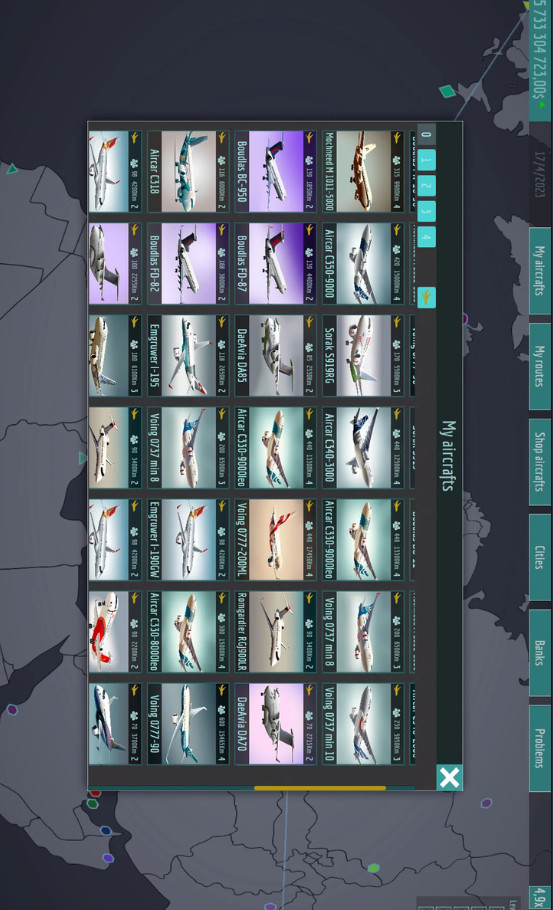 游戏中,玩家可以从现实世界的数百个城市和机场中选择一条合适的航线。航线规划系统考虑了燃油消耗、客流量等现实因素。同时游戏还提供了多种模型和装备,玩家可以利用自己的经济实力进行购买。机库系统收录了从经典机型到最新客机共200多种飞机模型。提高公司运营效率和客户满意度。值得一提的是,游戏中的商业模式非常好。客户反馈系统会实时显示乘客评价,帮助玩家优化服务。