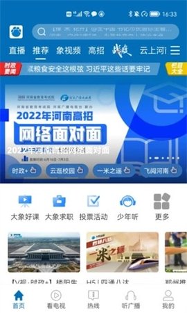 信息模块拥有热点、县域、生产经济、文化、教育、辟谣、公益、健康、曝光站等20多个内容版块,实现基于LBS地理位置和用户的本地信息推送该部分内容的自定义,让用户获取最贴近生活的资讯;"河南网络政务平台"已接入政政模块。两个用户相连,数据共享,风格统一。不仅实现了用户随时随地问政,还可以通过客户端查询政务进展和评价。询问政务质量,操作流程简单明了;服务服务模块目前提供空气和水质查询、高速查询、快递查询等7项民生服务,以及36个市级部门的政府申报查询服务。随着河南智慧城市建设的加快,更多的服务项目将不断更新和增加,满足用户多样化需求;视听视听模块可直接收看(收听)广播电视台4套电视节目和4套广播节目实时直播,并实现7天内节目重播以及两天内的节目预订;可以点播收看河南广播电视台所有独家原创视频节目,画质清晰流畅。