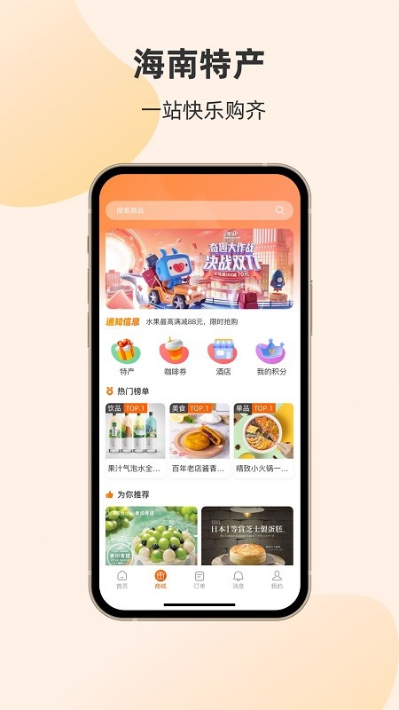 特产:精选海南本土上百种特色商品,从热带水果到手工艺品一应俱全,支持全国快递配送或到港自提,让您轻松带回家乡风味。
