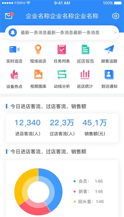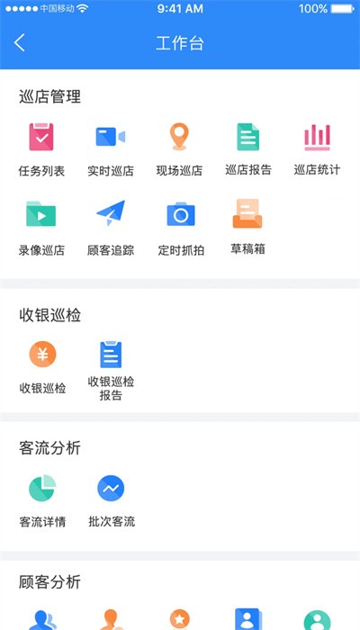 具有实时店铺巡查功能,用户通过监控可以清晰地看到店铺的详细经营情况,巡查报告自动生成并支持添加文字/语音备注;