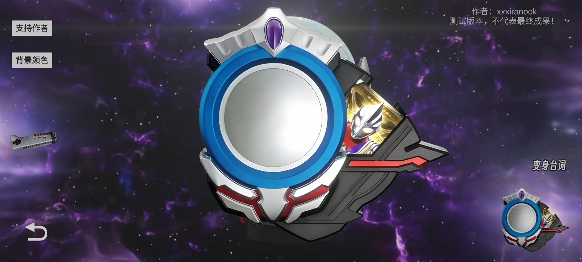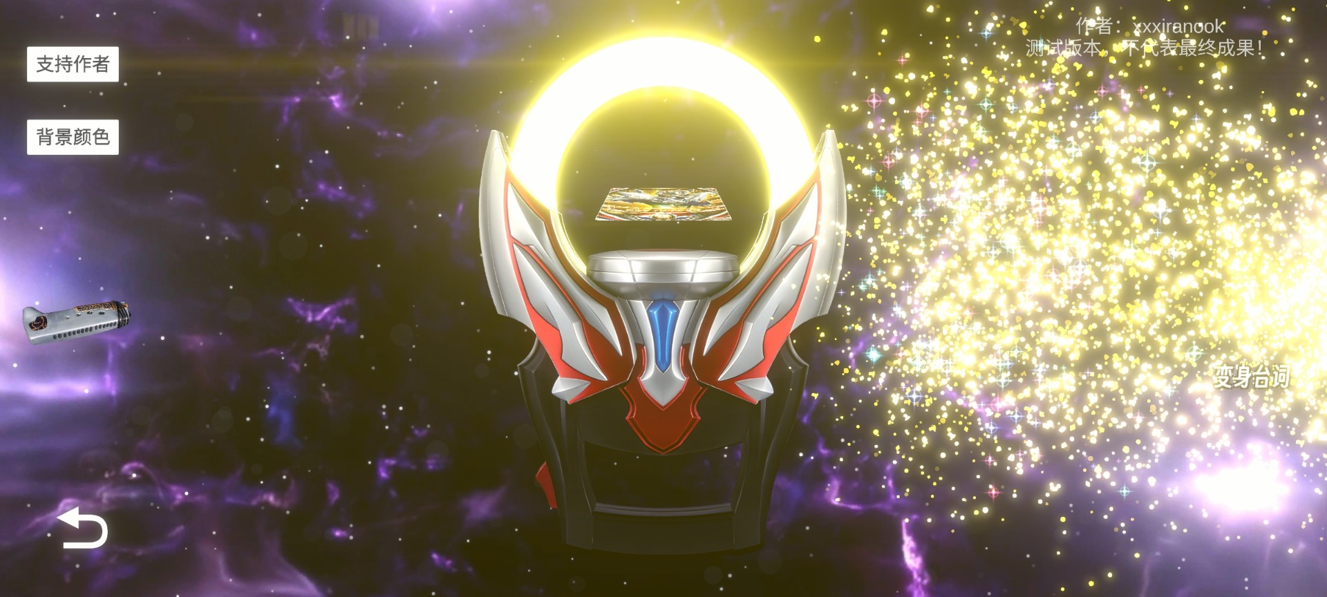 下载安装打开,会出现一个黑暗圆环。游戏界面设计简洁明了,中央位置就是标志性的欧布圆环变身器。点击圆环中间位置即可激活变身系统,系统会随机出现多张怪兽卡牌供玩家选择。选定想要的变身卡牌后,卡牌会环绕在圆环周围,再次点击卡牌就能完成变身。整个操作流程简单直观,配合震撼的音效和特效,让玩家能轻松体验到变身奥特曼的乐趣。