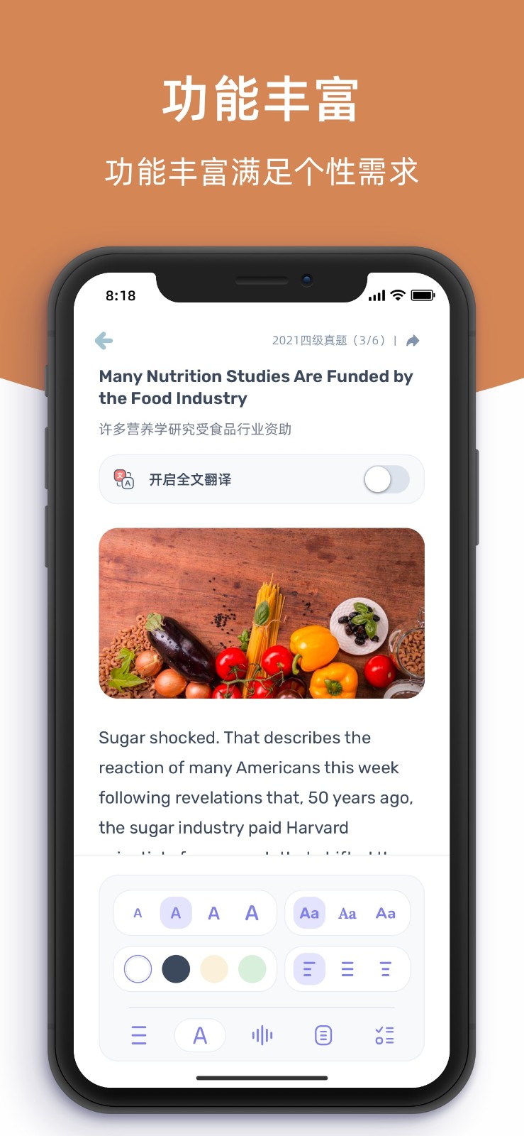 覆盖四级、六级、考研等考试内容,确保阅读训练与备考同步进行。所有内容都经过专业筛选,紧贴考试大纲要求,让用户的学习更有针对性。