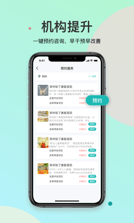 机构康复:人性化定制康复计划,专业治疗师一对一评估、指导,支持线下机构与线上服务无缝衔接,建立完整的康复档案跟踪系统。