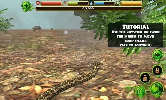 终极蟒中文版是一款完全免费的3D模拟生存游戏,将带你进入一个充满野性与冒险的热带雨林世界。在这个逼真的生态系统中,你将化身成为一条凶猛的大蟒蛇,通过简单的触屏操作来掌控它的每一个动作。游戏完美还原了原始森林的壮丽景观,从郁郁葱葱的树冠到阴暗潮湿的沼泽地,每一处细节都经过精心设计,让你仿佛真的置身于危机四伏的丛林之中。