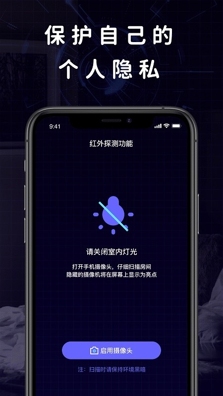 红外探测功能通过手机摄像头捕捉肉眼不可见的红外光线,能够发现隐藏的针孔摄像头。这项技术在黑暗环境中尤为有效,可以检测到大多数商用偷拍设备。
