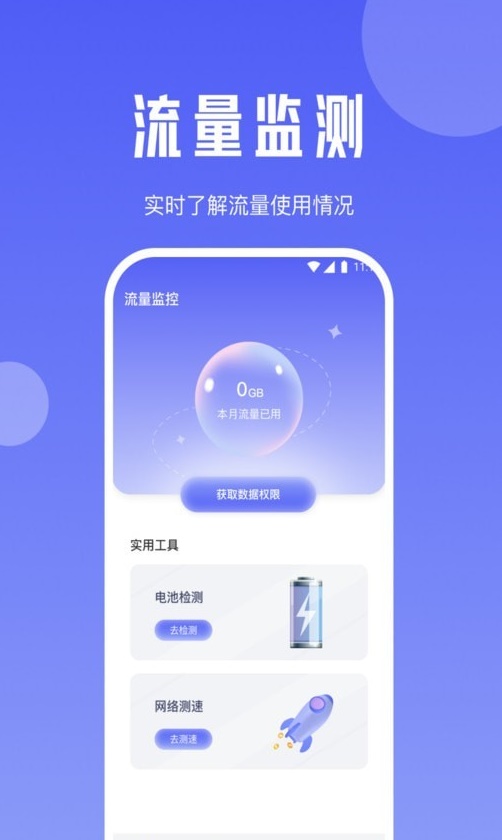 内置一键优化功能,可清理缓存垃圾,关闭后台运行应用,释放手机内存空间,提升运行速度;优化手机性能,减少流量消耗,让您的手机更加流畅,同时延长电池续航时间;用户可以轻松掌握流量使用情况,提前预警流量超出情况,避免额外资费损失,还能查看历史流量使用曲线,帮助用户更好地规划流量使用。