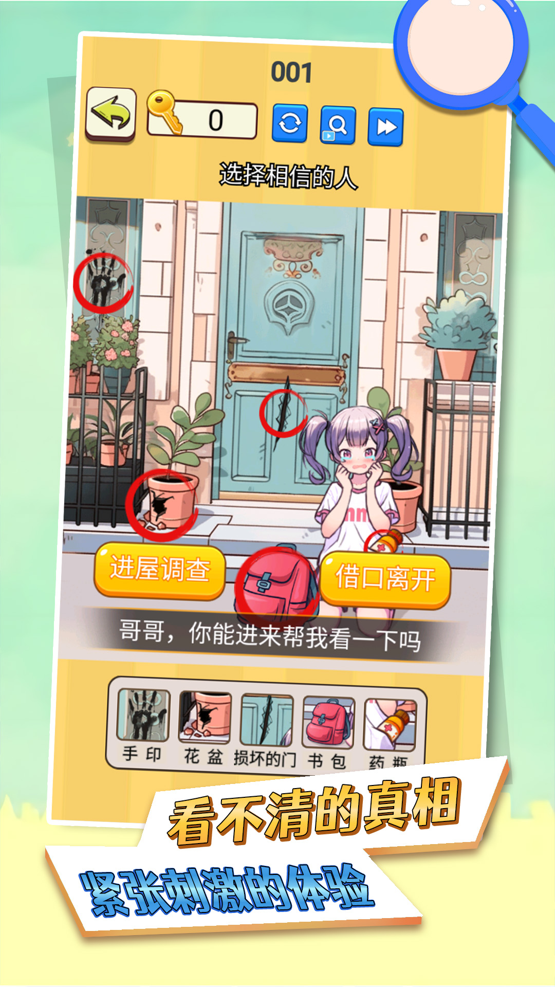 这款微恐休闲游戏考验玩家的观察力和推理能力。在游戏中,你将扮演一位细心的侦探,帮助朋友找出各个场景中令人细思极恐的细节和诡异之处。游戏画面精致细腻,每幅图画都暗藏玄机,从墙面上倒走的时钟到窗外若隐若现的诡异身影,都需要玩家仔细辨别。随着剧情推进,你会发现更多令人不安的细节,比如突然移动的家具、莫名出现的血迹等。成功标记所有异常现象后,就能帮助朋友脱离困境通关。游戏氛围营造出色,音效与画面完美配合,让玩家时刻保持紧张感。