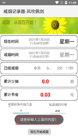 如果没忍住抽了烟,那么需要重置戒烟计划,并重新输入内容开始。软件提供人性化的重新开始选项,不会因为一次失误就否定全部努力,鼓励用户继续坚持戒烟目标。