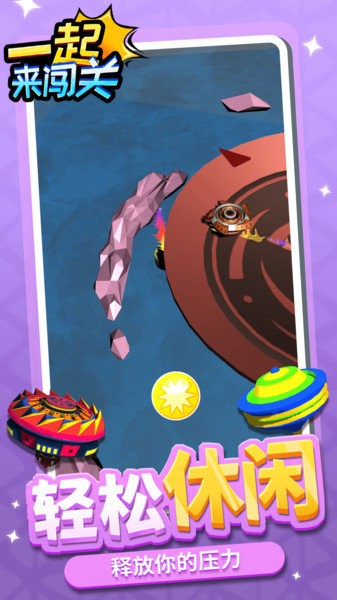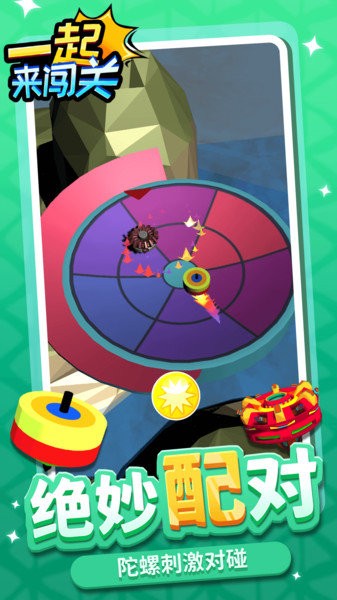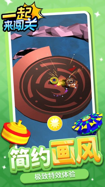 一起来闯关是一款以陀螺碰撞为核心的休闲竞技游戏,采用清新简约的美术风格,界面设计直观明了。游戏完美还原了童年玩陀螺的乐趣,同时加入了丰富的现代元素。简单易上手的操作方式让新手也能快速融入,但想要成为顶尖高手需要不断磨练技巧。游戏节奏明快,每场对战都充满变数,让人欲罢不能。