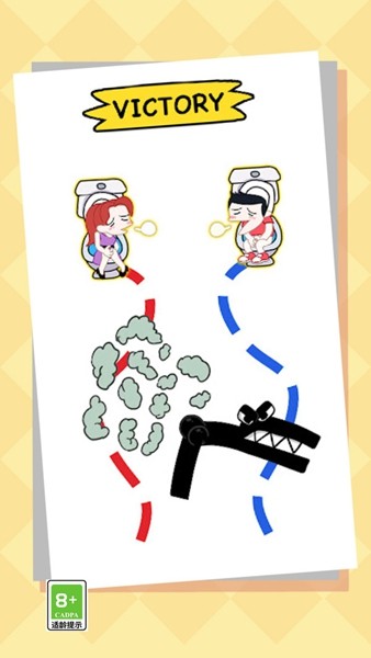 上厕所太难是一款由深圳市优智信息技术有限公司精心打造的经典益智类游戏,它将幽默诙谐的元素与烧脑解谜玩法完美结合。在这款游戏中,玩家将面临一个看似简单实则充满挑战的任务:帮助两个角色顺利完成"上厕所"的过程。由于游戏设置了各种弯弯曲曲的障碍路线,如何巧妙规划路径让两人互不干扰成为了游戏的核心乐趣所在。