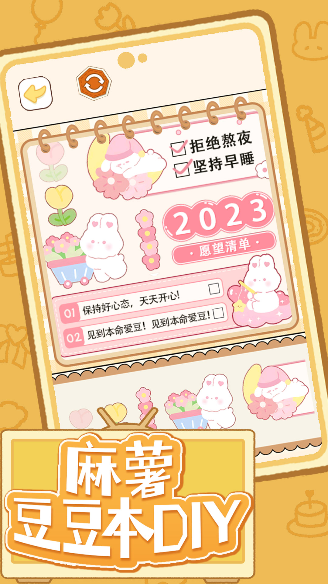 《麻薯豆豆本DIY》是一款充满创意与治愈感的休闲手工游戏,在这里你可以尽情发挥艺术天赋,亲手制作独一无二的安静书和麻薯风格手账。游戏采用粉嫩可爱的日系画风,上百种精美贴纸和装饰素材任你搭配,无论是制作梦幻手账还是设计立体豆豆本,都能带来沉浸式的手工乐趣。特别适合在午后时光放松身心,用指尖创作传递温暖,还能将成品保存分享给好友,共同感受手作的美好。