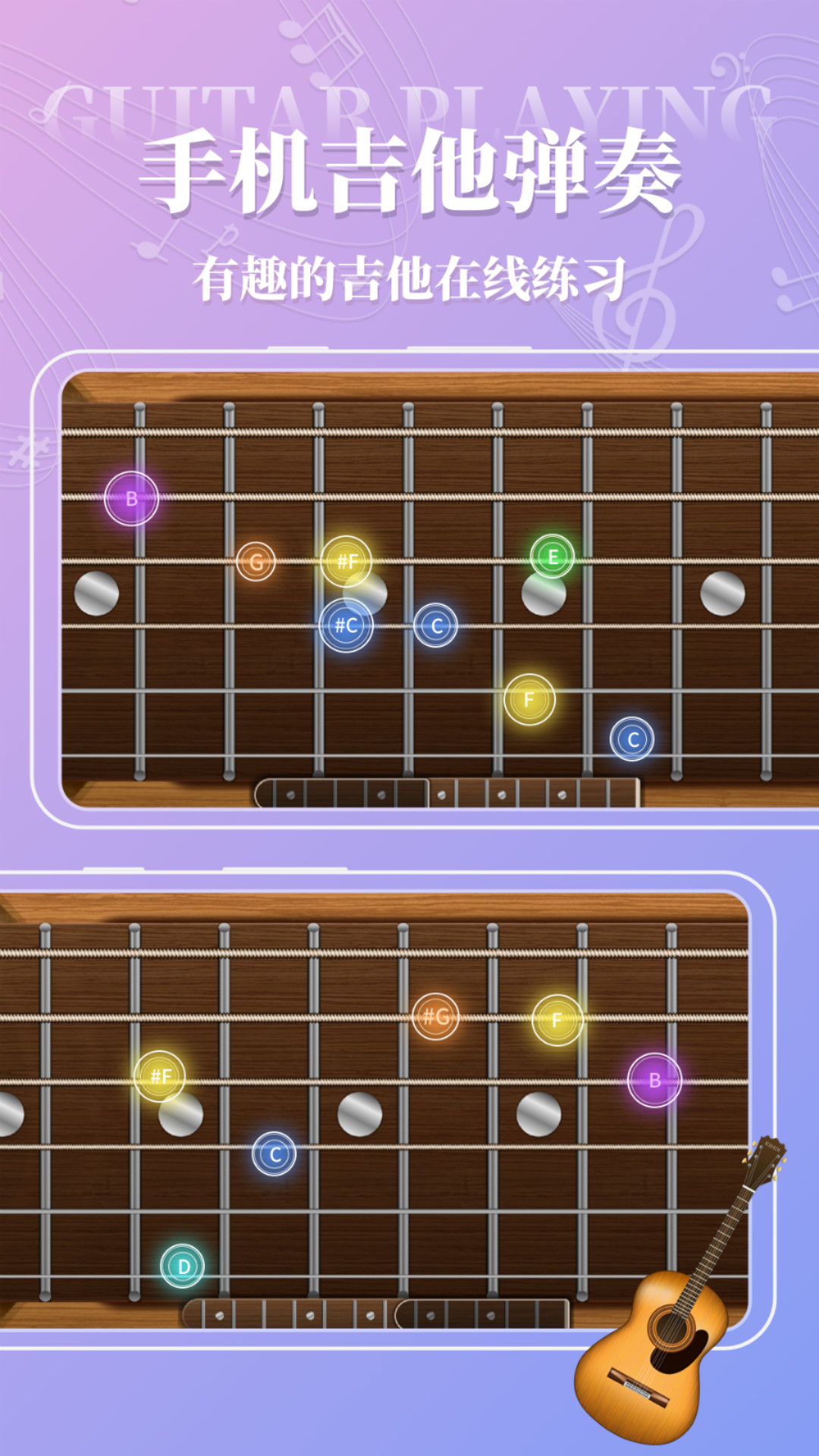 有趣的吉他在线练习;结合游戏化元素设计趣味练习模式,让枯燥的指法练习变得生动有趣。支持多人线上合奏功能。