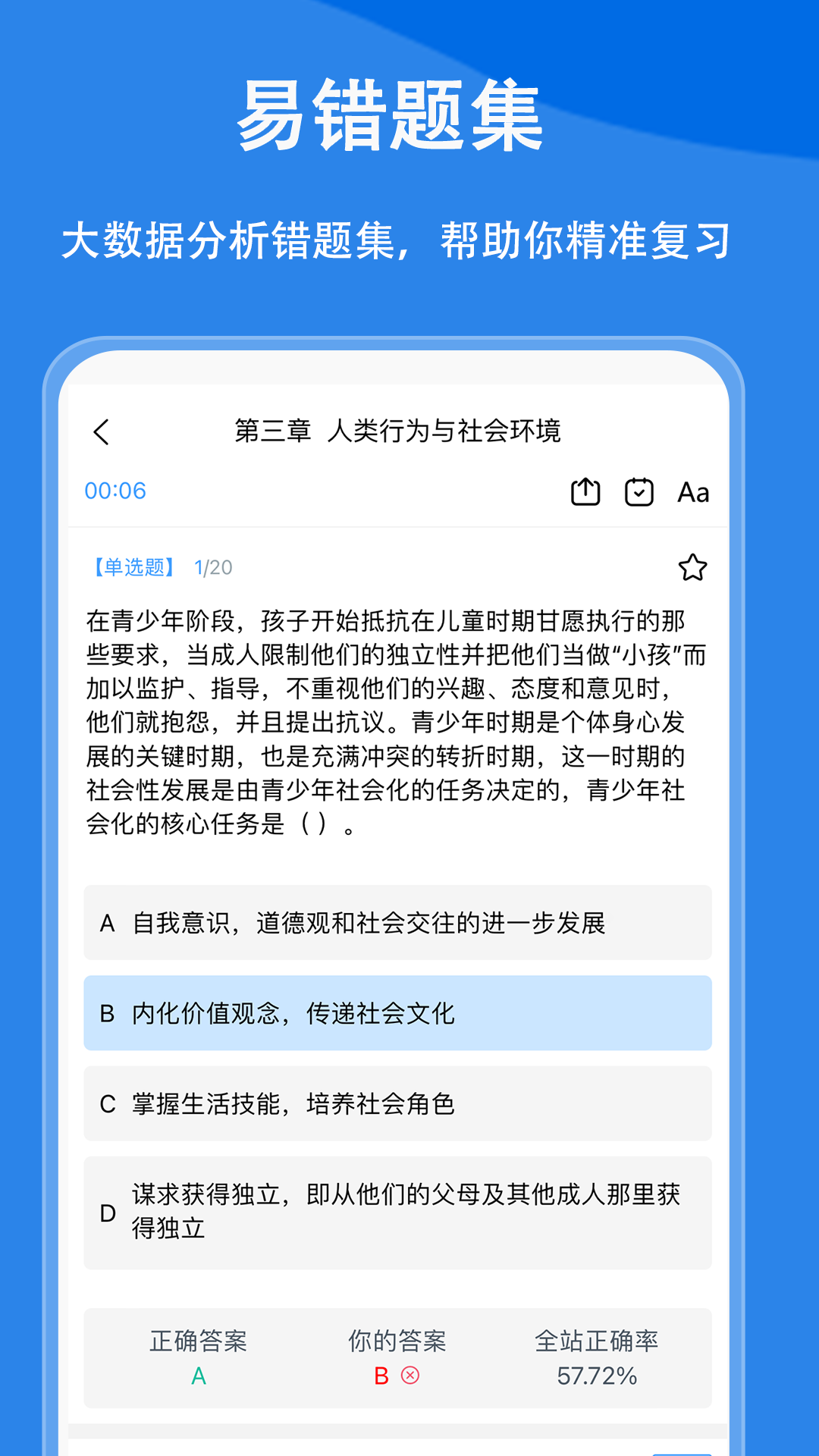 社会工作者题小宝App拥有强大的题库系统,包含上万道精选试题,涵盖社会工作实务、法规政策等所有考试科目。题库内容持续更新,确保与最新考试大纲同步。软件采用智能算法,能够根据用户的练习情况推荐最适合的题目,实现精准提分。对于重点年份的真题,建议反复练习,系统会记录您的答题轨迹,帮助您全面掌握核心考点。此外,App还提供知识点速记、考点精讲等特色功能,让您的备考事半功倍。