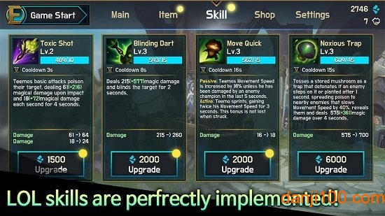 游戏收录了包括ezreal、leblanc、lucian在内的数十位经典英雄,每位英雄都拥有独特的技能组合和成长路线。开发团队承诺每月至少更新2位新英雄,确保游戏内容持续丰富。所有英雄均可通过游戏内金币解锁,公平的获取机制让玩家能够自由组建自己的英雄池。