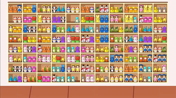 游戏界面设计精美绝伦,各种商品造型生动有趣,色彩缤纷地陈列在货架上。从新鲜水果到可爱玩偶,每件商品都经过精心设计,细节处理到位。
