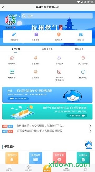 杭州燃气19服务厅是一款由杭州燃气集团官方推出的智能燃气服务平台,专为杭州市民提供全方位的燃气业务办理和生活服务。通过这款手机应用,用户可以轻松完成燃气缴费、用量查询、安全知识学习、管道维护预约、营业厅网点查找等多项功能,真正实现燃气服务"掌上办、随时办"的便捷体验。