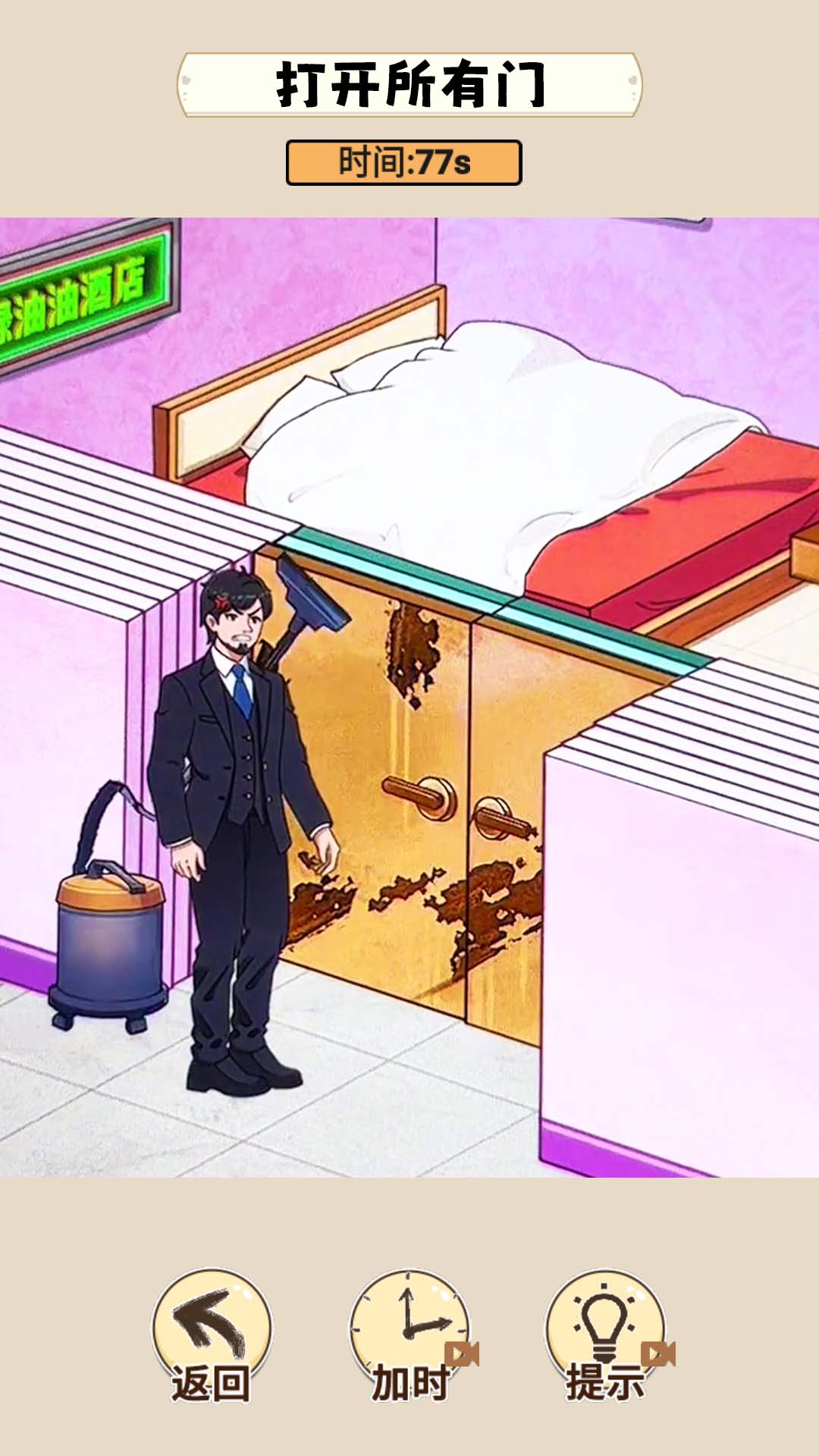 在游戏中选择喜欢的玩法。游戏提供多种模式选择,包括经典闯关、限时挑战和创意工坊,玩家可以根据自己的喜好自由选择。选择关卡进入。每个关卡都有独特的主题和背景故事,玩家可以先浏览关卡简介了解大致内容。点击可疑的地方帮助主角。仔细观察场景中的每个细节,特别要注意那些看起来不太协调或特别显眼的元素,往往就是解谜的关键。