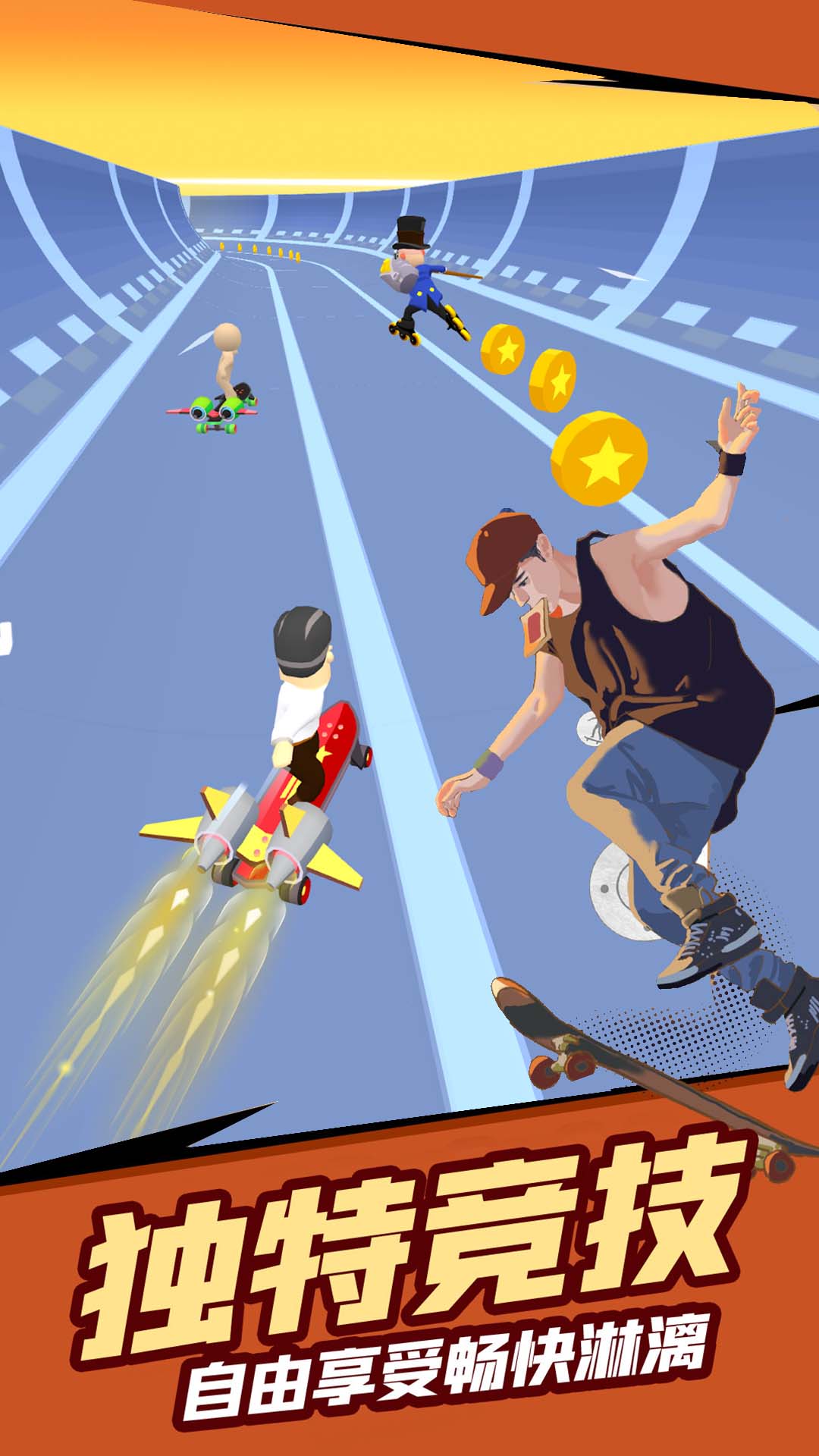 游戏为玩家带来独特的赛车体验,将传统卡丁车玩法与滑板运动完美融合;精心设计的短距离赛道配合快节奏的游戏机制,大大提升了比赛的紧张刺激感;丰富多样的赛道场景和物品收集系统,为玩家提供了持续的新鲜感和竞技乐趣。
