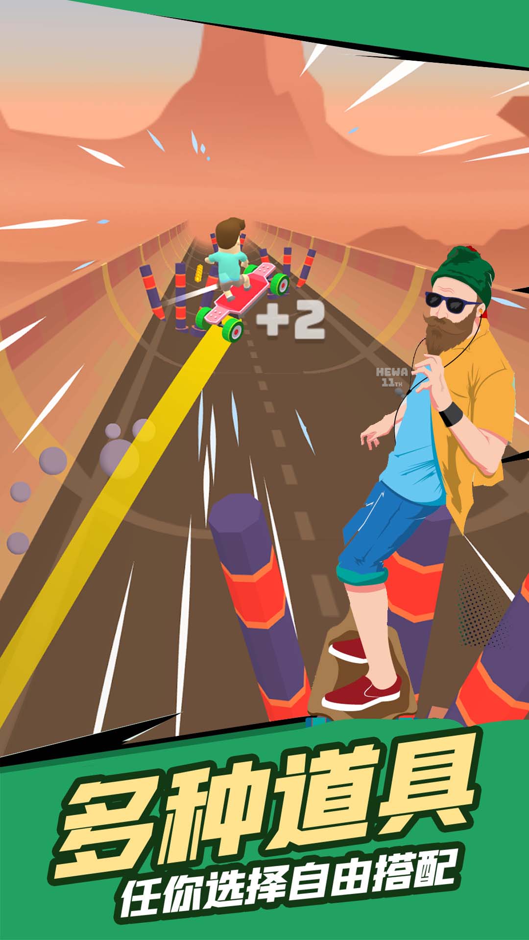游戏拥有海量个性化滑板和骑行装备选择,让每位玩家都能打造专属风格;酷炫的外观设计和丰富的表情系统,完美展现滑板运动的潮流魅力;精心制作的音效搭配独特的视觉风格,为玩家营造出沉浸式的赛道体验。