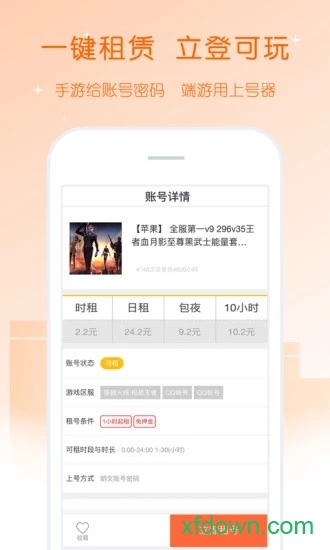 的封面,可以查询游戏账号租用的价格。所有账号都明码标价,支持多种支付方式,价格透明无隐藏消费。