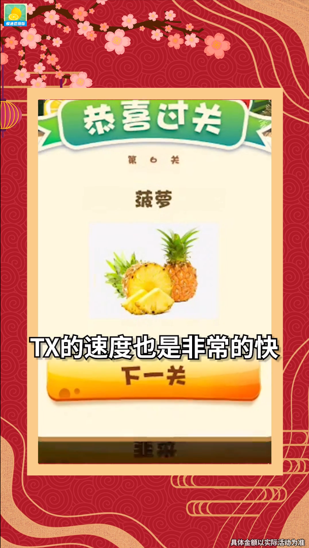 趣味猜水果是一款集休闲娱乐与赚钱于一体的益智类手机游戏,它以生动有趣的水果图片为题材,让玩家在轻松愉快的氛围中挑战自己的观察力和反应速度。这款游戏操作简单易懂,只需根据屏幕上显示的水果图片,从下方三个选项中选择正确答案即可通关。随着关卡推进,游戏难度会逐步提升,但相应的红包奖励也会更加丰厚,让玩家在享受游戏乐趣的同时还能获得实实在在的现金收益。
