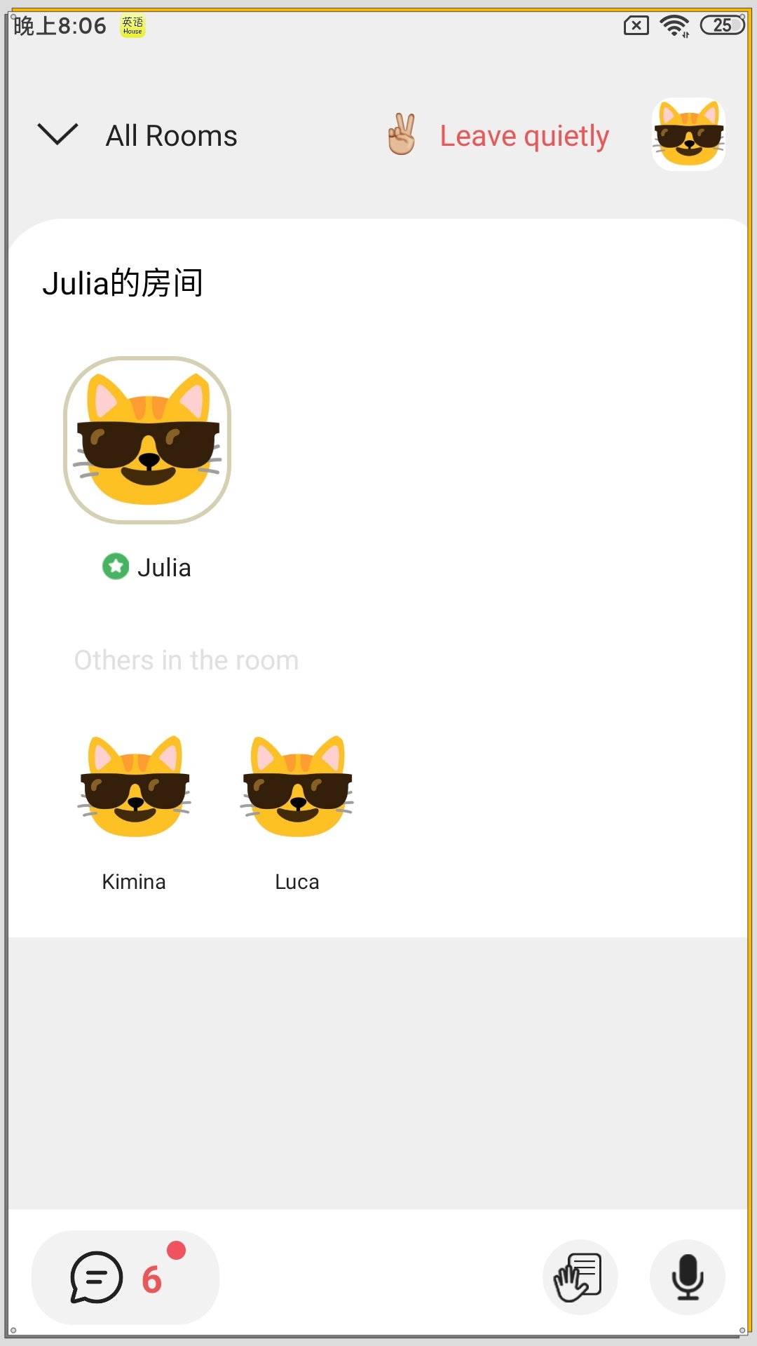 英语屋的特色是声音,也就是在语音房里用英语聊天,这种创新的学习方式让语言练习更加自然流畅,告别哑巴英语的困扰。