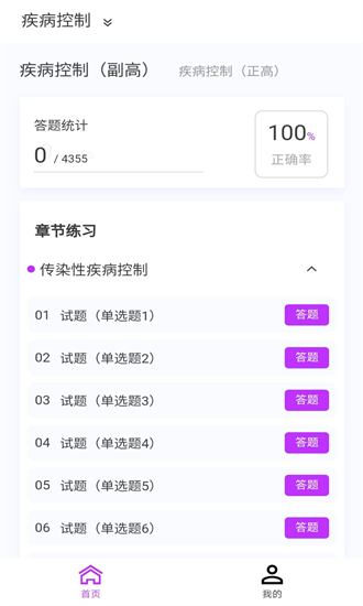 疾病控制考试设《基础知识》、《专业知识》、《相关专业知识》、《专业实践能力》4个科目,每个科目都有对应的专项练习模块。