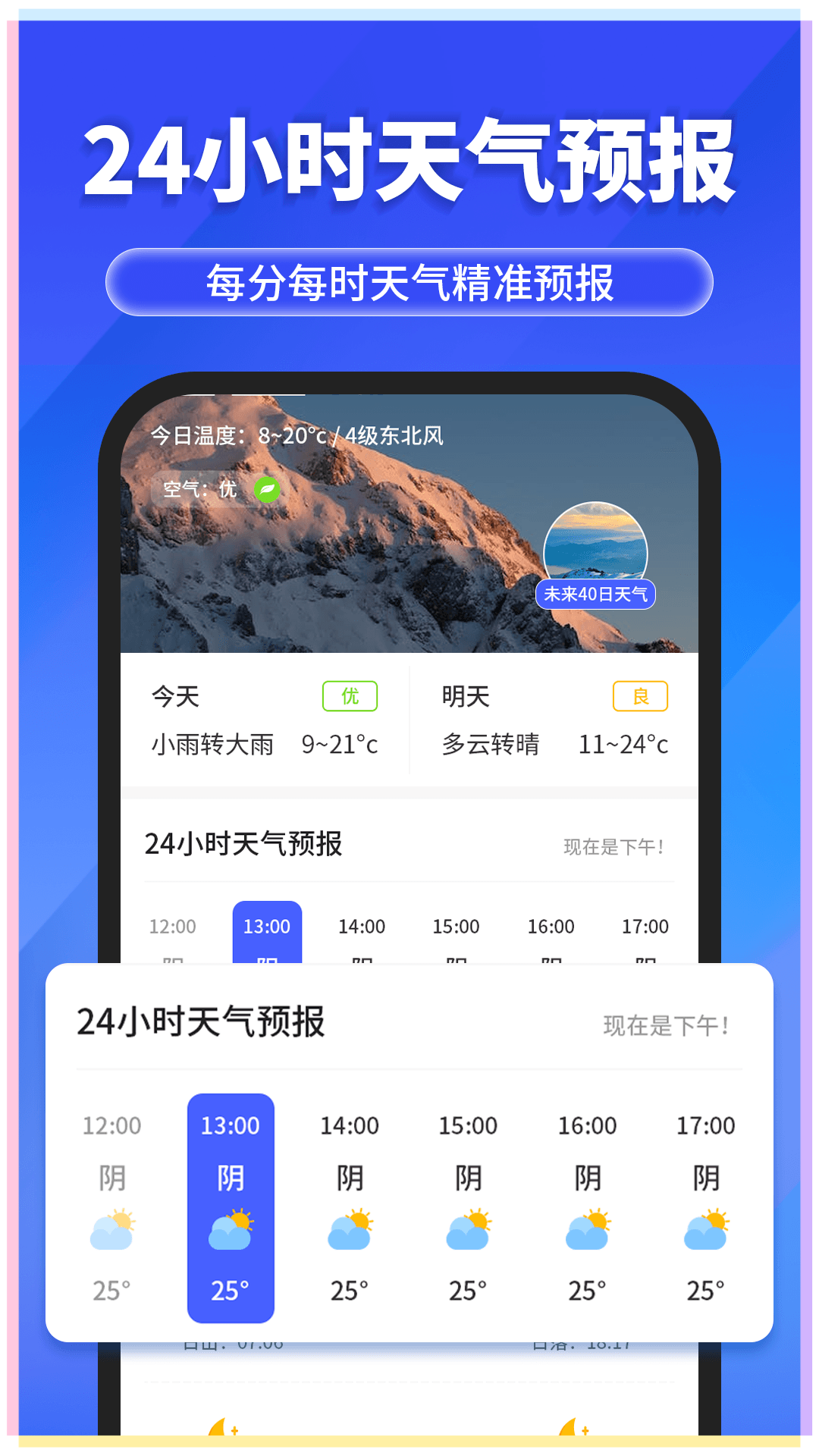 预警及时:与气象部门数据同步,第一时间推送各类天气预警信息,保障用户安全。