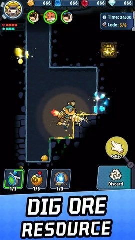 操作非常简单。当玩家进入矿井时,只需点击方向键控制角色移动,然后点击场景中的土块即可进行挖掘操作。直观的操控方式让新手也能快速上手,专注于策略制定。