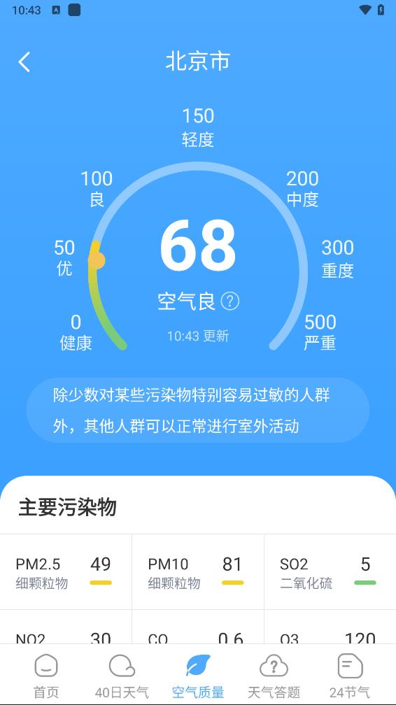 空气质量预报:不仅提供当前空气质量状况,还能查询未来5天的空气质量变化趋势。