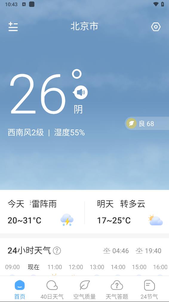 逐小时天气预报:提供24小时内每小时的天气变化预测,特别适合需要精确安排时间的人群。