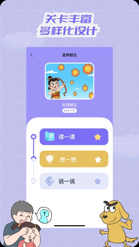 生动有趣的插画,配上人声讲述,轻松了解文常知识。界面设计充分考虑儿童使用习惯,大字体、高对比度配色保护视力,支持夜间模式和家长控制功能,确保孩子在使用过程中的舒适与安全。