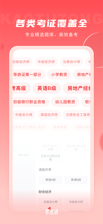 考途通app官方版是一款专为职业资格考证打造的智能学习平台,汇聚海量专业题库与权威学习资料,助力用户高效备考。无论是职业资格认证、语言升学考试,还是财会经济、建筑工程等热门领域,这里都能提供精准的题库资源和个性化的学习方案。用户可随时在线测试,通过智能分析薄弱环节,针对性提升应试能力。同时,app还提供考试资讯同步、名师解析、模拟考场等实用功能,让备考过程更科学、更轻松。考途通致力于成为每位考生通往职业成功的智能助手,帮助用户以更高效的方式实现考证目标。