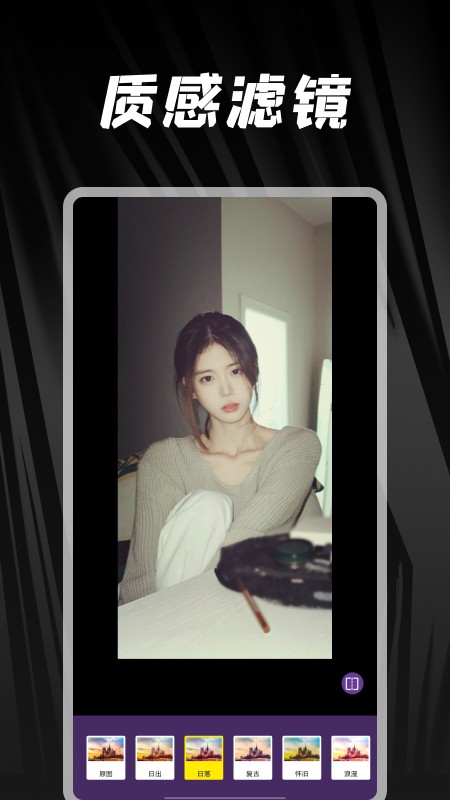 使用一键拼图功能,可将多张照片智能拼接,支持横版、竖版及创意排版模板,轻松制作精美相册。纹理滤镜相机内置多种风格滤镜,如复古、胶片、黑白等,是拍摄时的必备神器。智能美颜功能可自动识别面部特征,精准修饰肤色、五官和轮廓,打造无瑕的护肤效果,让您的照片更加自然动人。